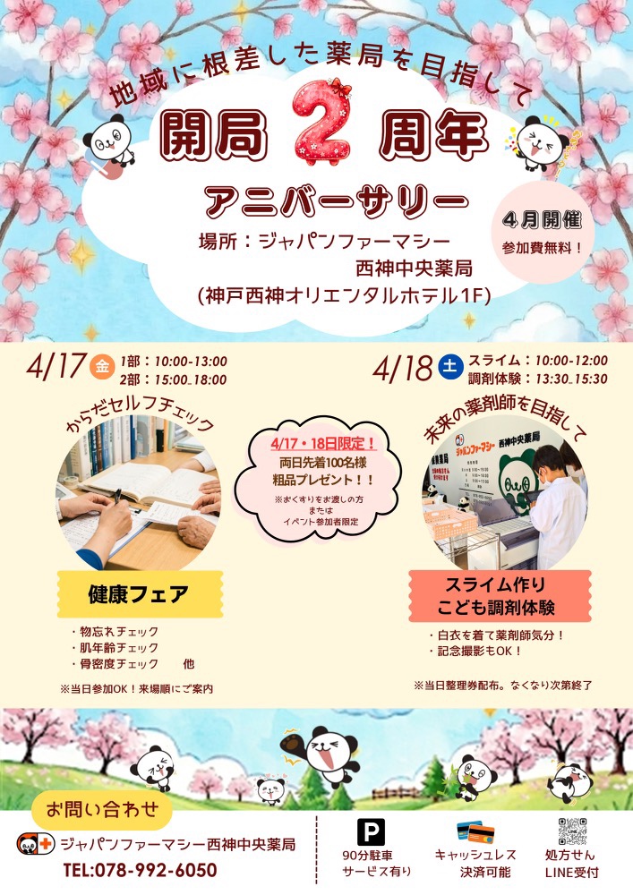 日頃の感謝を込めて4月17日(木)・18日(金)ジャパンファーマシー西神中央薬局でイベントを開催致します。